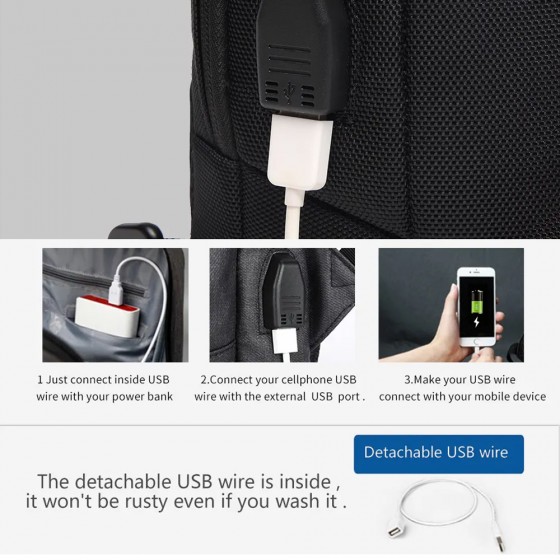 - USB Charge port (charges your devices while on the go, keeping the power bank in the case)