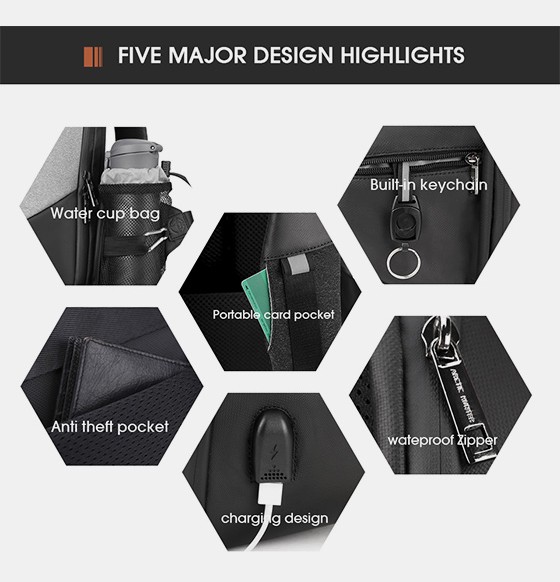 This is a practical and stylish Laptop backpack. Its large space has multifunctional compartments for the items you need and find them quickly. The TSA anti-theft lock not only changes the aesthetics of the backpack, but also guarantees the security of your items. The surface of the backpack is made of high-quality, waterproof materials, the zipper is also waterproof.